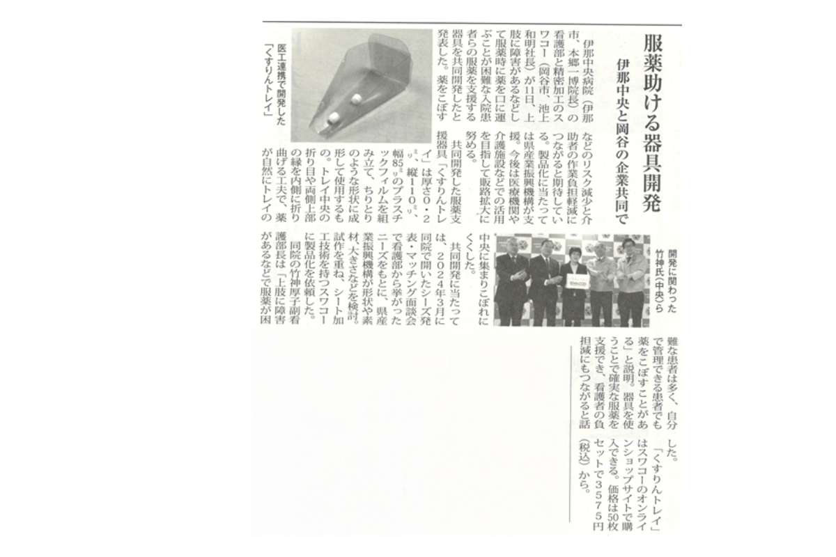 【メディア掲載】医療タイムスに伊那中央病院様との共同開発製品「くすりんトレイ」が掲載されました